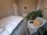 Double bed plus computer desk workstation with swivel chair/shelving/large wardrobe plus suitcase storage above. Kettle/microwave/hairdryer.
