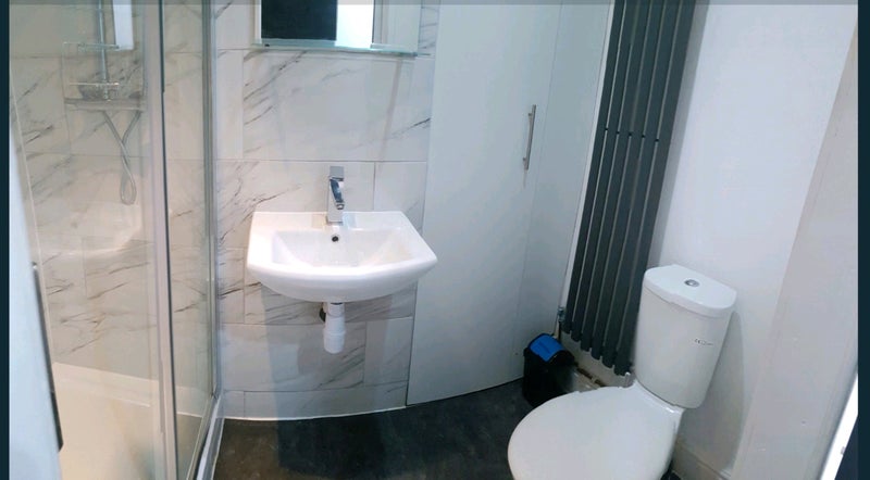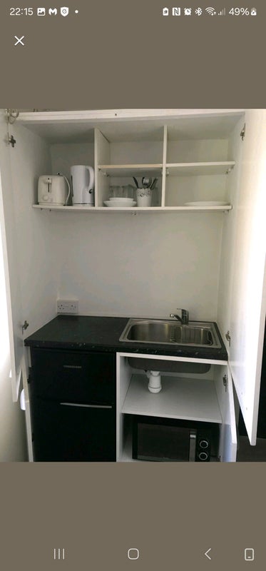Studio apartment rooms. Each are fully furnished and have en-suite bathrooms and kitchenettes with fridge/freezer, sink, microwave kettle and toaster. The studios also have use of the large communal fully fitted kitchen/diner/lounge area with sofas and flat screen tv and low maintenance garden.