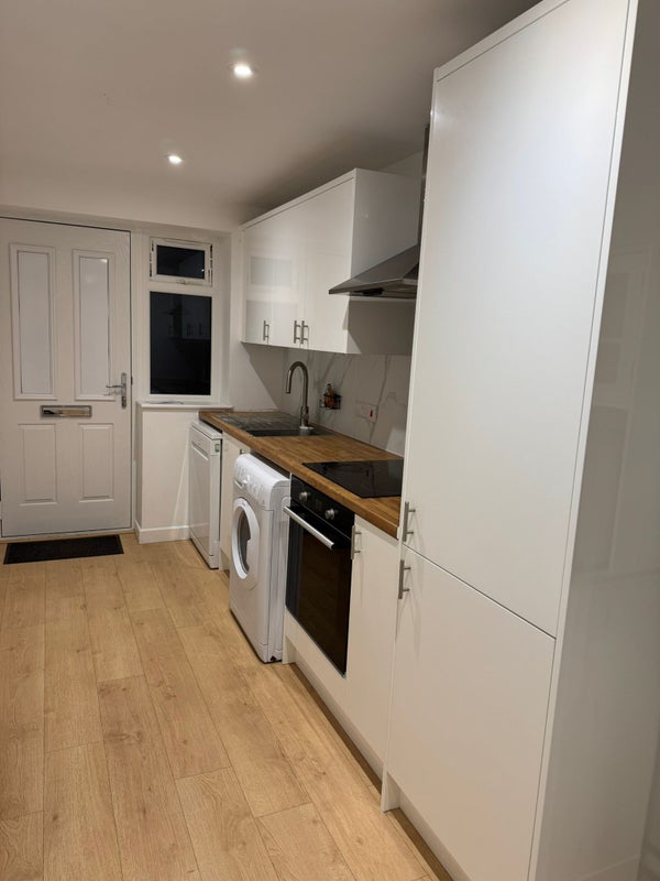 Brand new kitchen with Dishwasher, washing machine, cooker, refrigerator, microwave, oven.
