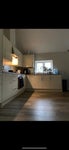 Apartment is modern with a lot of lighting , has wooden floors, washing machine and dishwasher