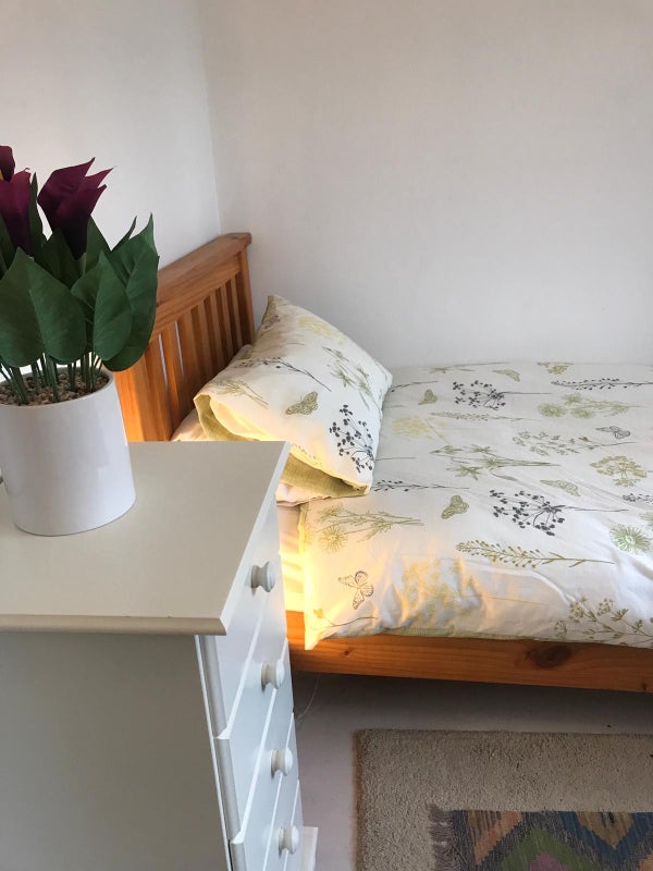 One double room with en-Suite shower room and one single room in large shared house with excellent facilities, and a big garden that backs onto a conservation woodland.