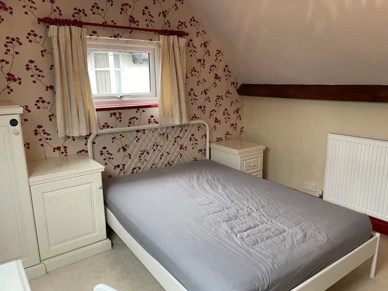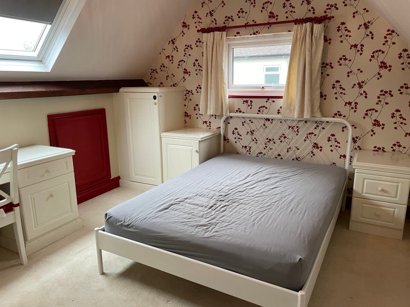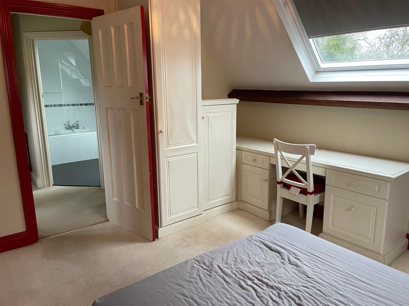 The room is fully furnished with double bed, desk and plenty of storage. It is next to what will be primarily your bathroom (it is only ever otherwise used when we have guests to stay or occasionally during the working day if I’m working from home).
