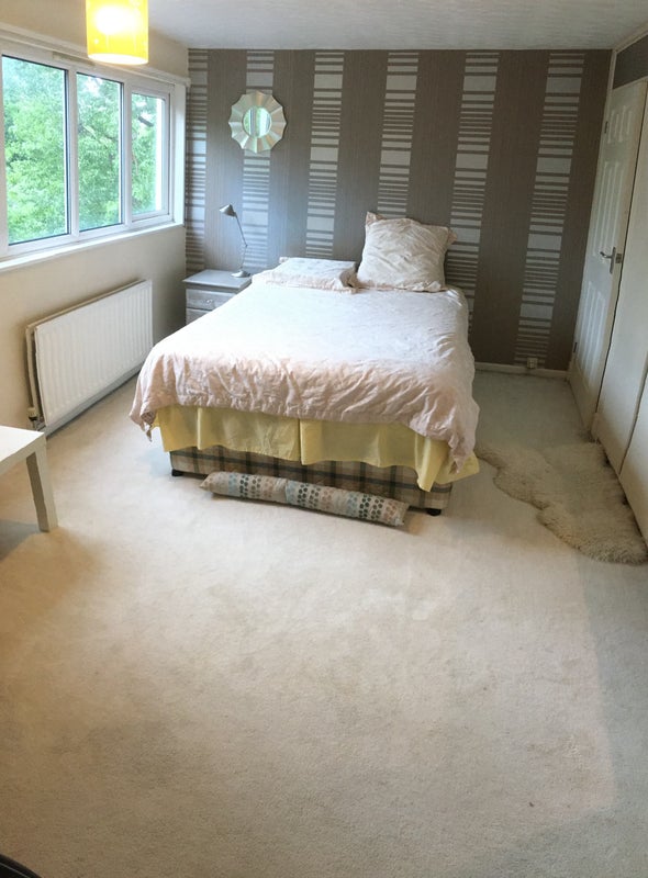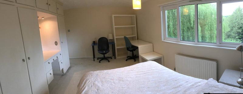 BEDROOM 2 (600): A large double overlooking the garden side, gets the morning light but has thick curtains if you need a lie in! There is a deep inbuilt closet with shelving, drawers and a rail, which should be ample storage for most, plus a simple desk & lamp, but the bedroom furniture is flexible as required. (It currently has 2 singles in there, but I have a double bed frame available, so can swap out accordingly).