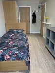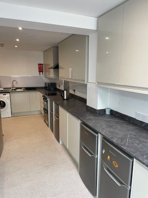 One room available in this house, which has 5 en-suite, fully furnished rooms, all with own bed, desk, wardrobe & chair(s). Recently refurbished fully fitted shared kitchen with washing machine and 5 fridge freezers. There is also a shared seating area.