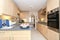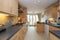 Fully equipped kitchen: fridge/freezer, electric kettle, microwave/oven, toaster, dishwasher, gas cooker, dining table, and chairs.