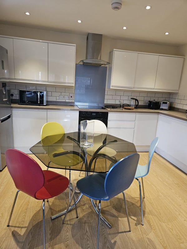 A double bedroom, new mattress with own separate bathroom - shower over bath, in a 2 bedroom apartment available for rent in Central Milton keynes. Sharing with professional young lady of Indian bay ground. It is fully furnished to high standard. Air conditioning. 2nd floor with elevator. Fully equipped kitchen, with utentils, washing mashine, dishwasher and dryer. Opposite Bannatyne Health and Spa, 10 minutes walk to Central MK train station.