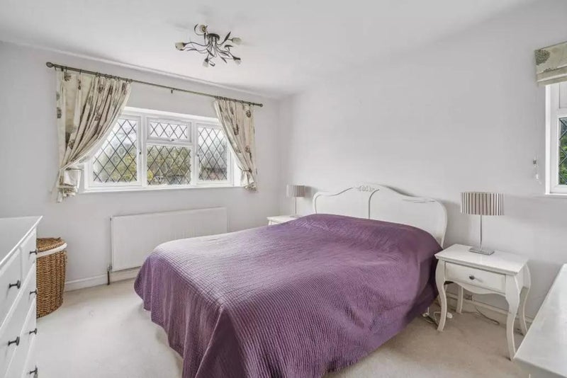 A four bedroom family home with a super garden, reception spaces, driveway parking for several cars.