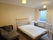 The room is on ground floor in a town house and includes a double bed, sofa, wardrobe, study table with chair, 2 chest of drawers and an extra chair.