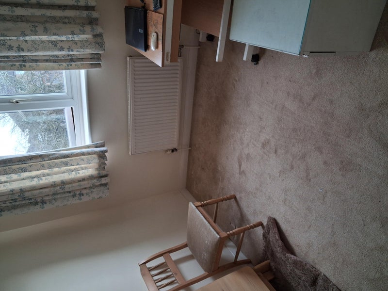 The room is approximately 10ft x 15ft and currently has a double wardrobe, desk and small chest box drawers. You could bring your own bed or I can purchase one.