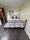 The room has been recently refreshed and is fully set up, ready for immediate move-in. It includes a king size bed with fresh bedding, bedside storage and a bright, neutral feel throughout