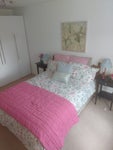 The room is a large double room with a wardrobe and furniture included. The room has a connected en suite bathroom.