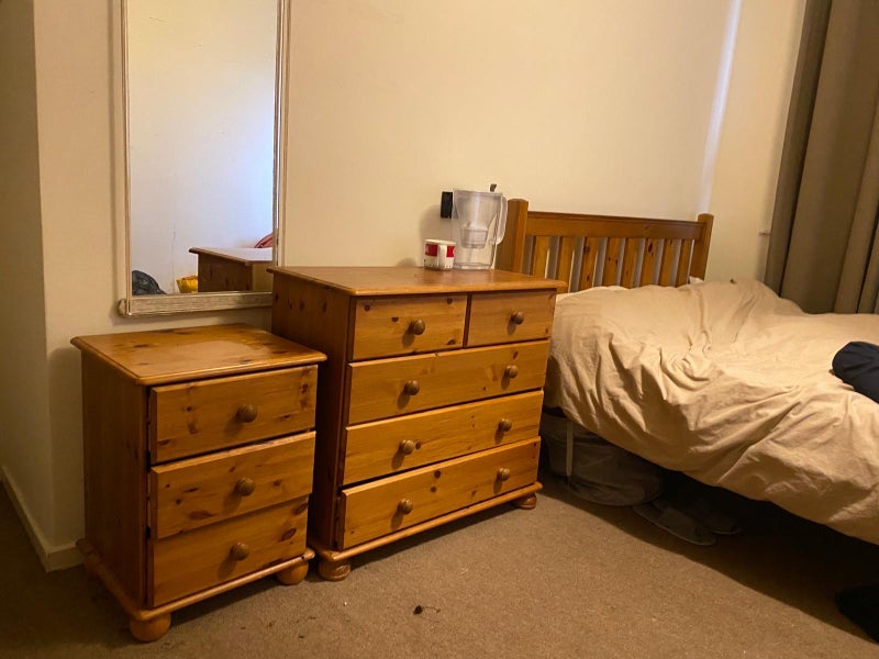 • Fully furnished with carpet, double bed, wardrobe, and chest of drawers