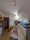 Shared kitchen/living room with our furniture, including a sofa and a big TV — we use this space to relax and socialise