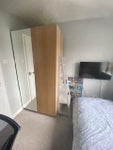 We have a single room to let in a family house (couple plus student son). The room has a new single bed and mattress and a wardrobe, desk and chair and shelves, plus TV. Can provide double bed if required.