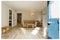 The flat is furnished, with a generous sitting room leading to a compact kitchen space and additional dining or study hall. The bedroom has a large window to the garden, fitted cupboards and under-bed storage.