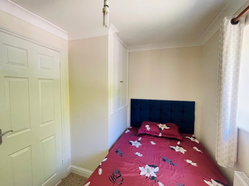 4 feet bed, Single wardrobe and wall storage. Computer table and chair (if needed).