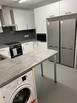 Kitchen with microwave, cooker , washing machine , fridges and freezers