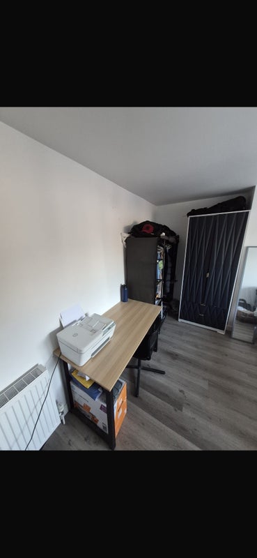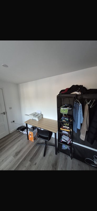 Double bed, desk , chair and wardrobe