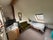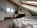 Double bed, some cupboard space available, desk, 1 large window and a skylight.