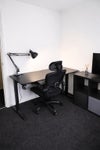 Fully furnished with bed, clothing rack, TV, and an electric height-adjustable desk with lamp. Ideal for studying or working. The room has good natural light and a comfortable setup.