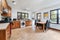 Entering the house via a large reception/office room, there is a very large lounge with a vaulted ceiling and around 70m2 of shared living space, including a dining area and space to work from home (on request). There are views over a large garden, the room is finished to a very high standard with oak floors, two large leather sofas, a day sofa-bed, a large dining table for 10 people, cocktail cabinet with oriental furniture and decoration throughout.