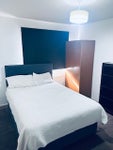 A newly refurbished and spacious double bedroom available in a well-maintained home. The room includes a comfortable double bed, brand new curtains, and new drawer storage, creating a fresh and modern living space.