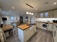 Large open plan Kitchen/Lounge/Diner. Finished to high spec. Fully equipped Kitchen Includes oven, grill, microwave, air fryer, dishwasher, washing machine, fridge/freezer, kettle and toaster.