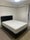The bedroom is furnished with a double bed, large TV, an open wardrobe, a cabinet, and a rug. There’s also extra storage with under-bed drawers