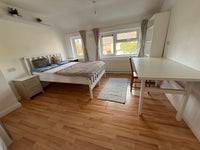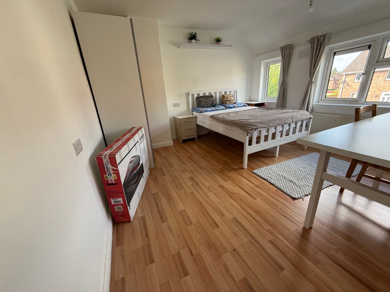 Quiet one bedroom flat on first floor: One large double bedroom ( equipped with a double bed, TV, wardrobe, large book shelf, large desk and chair), big kitchen / living room (with large dining table and large sofa bed), large fridge/freezer is on corridor, a bathroom ( shower /basin /toilet / shaving socket, fan etc). Off street parking for one car is secured, large bike store at rear garden, plenty of space to do exercise in rear garden.