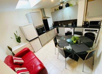 Cosy and spacious rooms to rent in a beautiful modern large three-story house. Our property features a newly fitted open plan kitchen and dining room including all white goods: washing machine & dryer, fridge, oven, hob. toaster, microwave, kettle, hoover, mop, iron/ironing board.