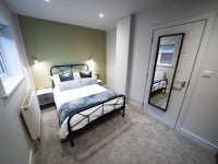 Bedroom Three is available for rent and comes with a comfortable double bed which lifts up to provide storage underneath, fitted wardrobes plus additional storage as well as dedicated work from home set-ups with hardwired wifi ports and tv aerials.