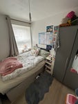 You’ll be sharing with one female student, so this would suit a female student or young professional looking for a calm, tidy household. The room comes furnished with a double bed and storage.