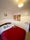 The flat is fully furnished, and the room is furnished too, equipped with a bed frame, mattress, desk, chair, lamp, two chests of draws, and two cupboards.