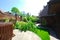 The house is approached through its own courtyard garden with pond, a small lawn, raised patio and flower beds.