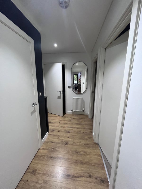 Very quiet and big double room in new development with park view, in walking distance to Canary Wharf.