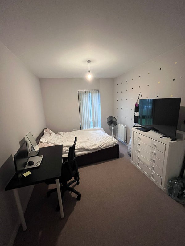 Fully furnished room with double bed.