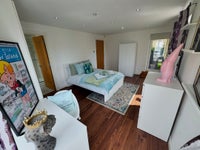 - Double bed, full-size desk, wardrobe