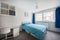 A bright, well-proportioned bedroom finished in neutral tones with modern flooring. The room includes: