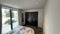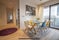 The bedroom features floor-to-ceiling windows, offering plenty of natural light.