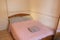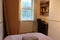 - Double bedroom with small double bed, wardrobe, desk and chair.