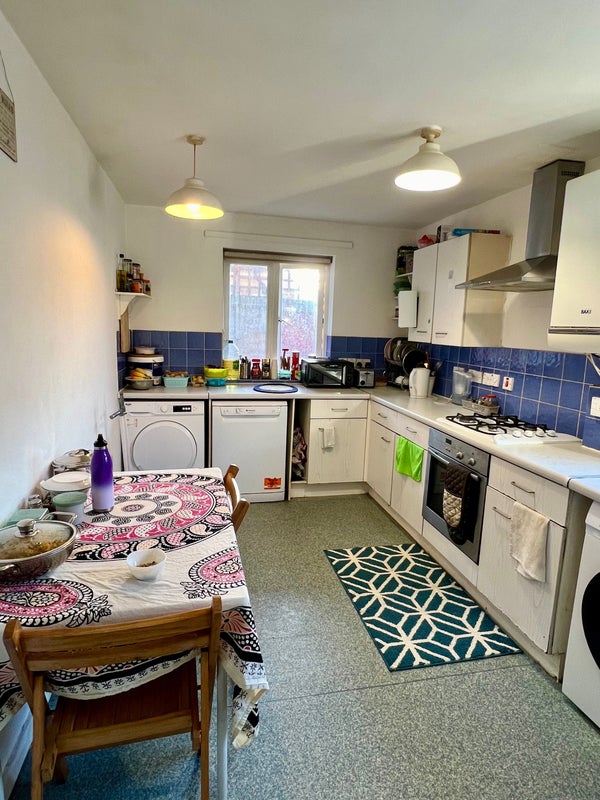 A spacious large double room is available in a 2-bedroom ground floor house in E14.
