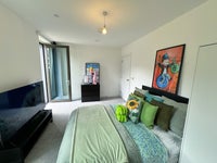 Luxury double room with a private balcony in a sleek riverside flat close to Canary Wharf and East India DLR.