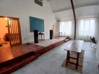 The building offers very high ceilings, generous proportions, and a calm, creative atmosphere that’s quite different from a typical house share.