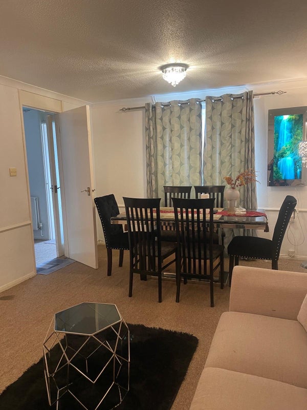 This is a three bedroom house with Bathroom (Bathtub, sink, Toilet) and a separate toilet very close (5minutes walk) to the local amenities (Farmfood, Aldi, Asda, B&Q, B&M, Pure Gym). Town center is also close by (you could walk or catch a bus). Ideal for a family or tourists
