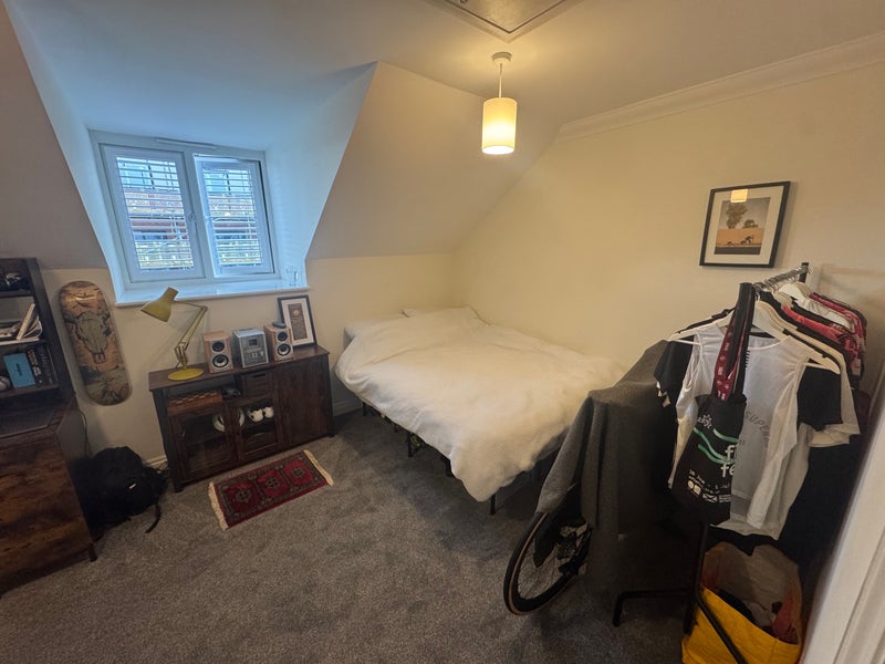 The room is on the top floor and comes with its own private bathroom, so it feels self-contained and separate from the rest of the house. The layout works well for privacy, with the kitchen and utility room on the ground floor, and the living room and master bedroom on the middle floor.