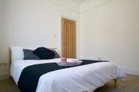 The available room is downstairs at the front of the house. The room includes a double bed and a wardrobe.