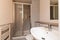 Large bathroom with a shower/bath.