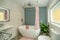 The house includes a large shared kitchen/dining area, modern bathroom with a free-standing tub, cosy shared lounge area, second separate upstairs toilet and a spacious back garden.