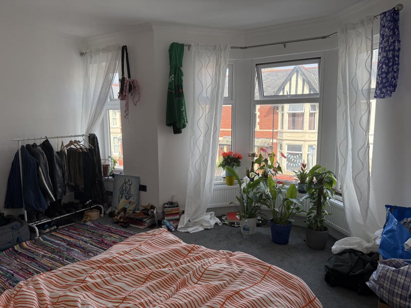 The room is very large with a bay window and is carpeted. The room does not come furnished however the rest of the house such as the lounge has furnishings and all the white goods in the kitchen come included. I can also leave clothes rails if needed :)