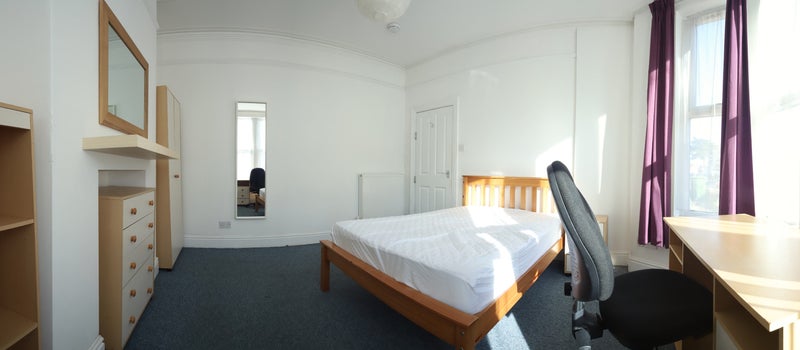 Room features double bed, desk, gas lift swivel chair, wardrobe, chest of drawers, bedside cabinet, bookcase, a TV point for Freeview and a network point in addition to Wi Fi.
